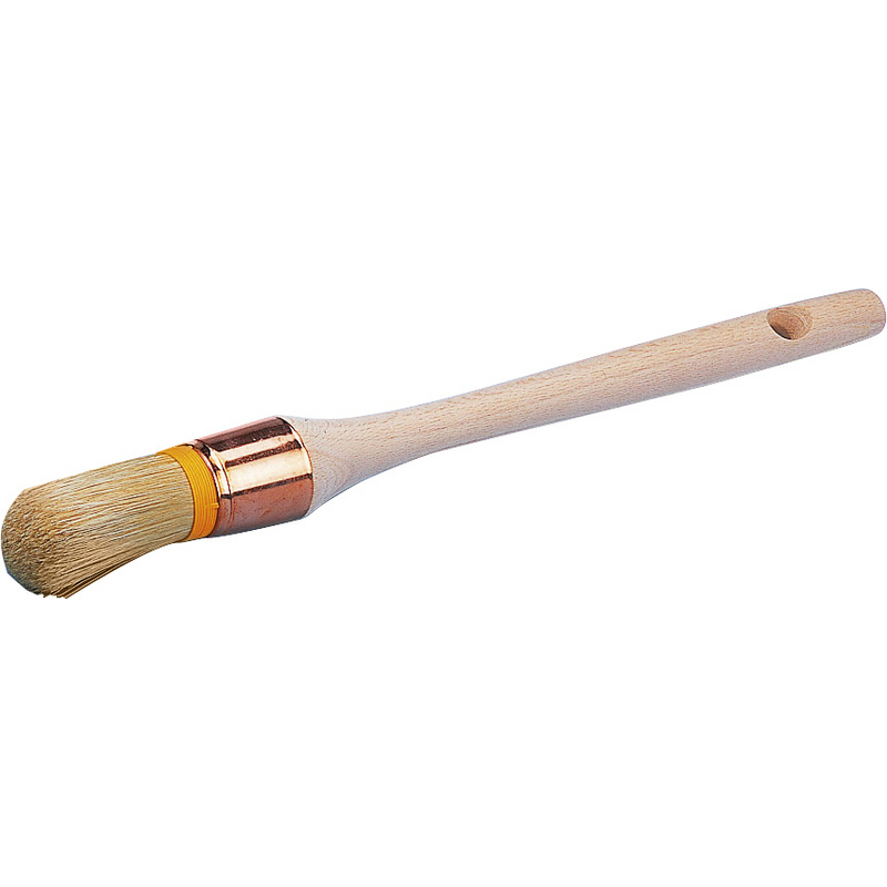 Soies blanches de haute qualité, manche en bois naturel poncé. Virole en acier cuivré.
