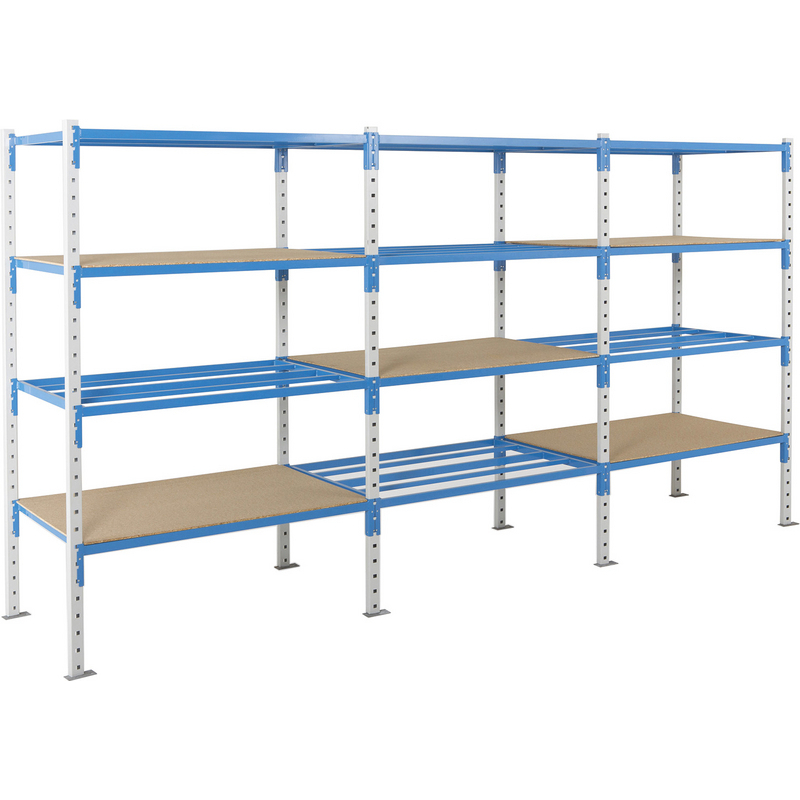 Conforme alle raccomandazioni FEM 10.2.06 ed Eurocode III Montanti provvisti alla base di piastre in metallo galvanizzato, preforati con passo di 62,5 mm per la regolazione dei ripiani. Carico massimo per elemento: 2.500 kg Finitura dei montanti in acciaio grigio RAL 7035, ripiani in acciaio blu RAL 5015. 3 versioni di ripiani disponibili: Tubolari con opzione copertura in agglomerato / Lamiera / Griglie Applicazioni: Scaffale per lo stoccaggio manuale di carichi semi-pesanti in officine di manutenzione. Stoccaggio di componenti meccanici in fabbrica.